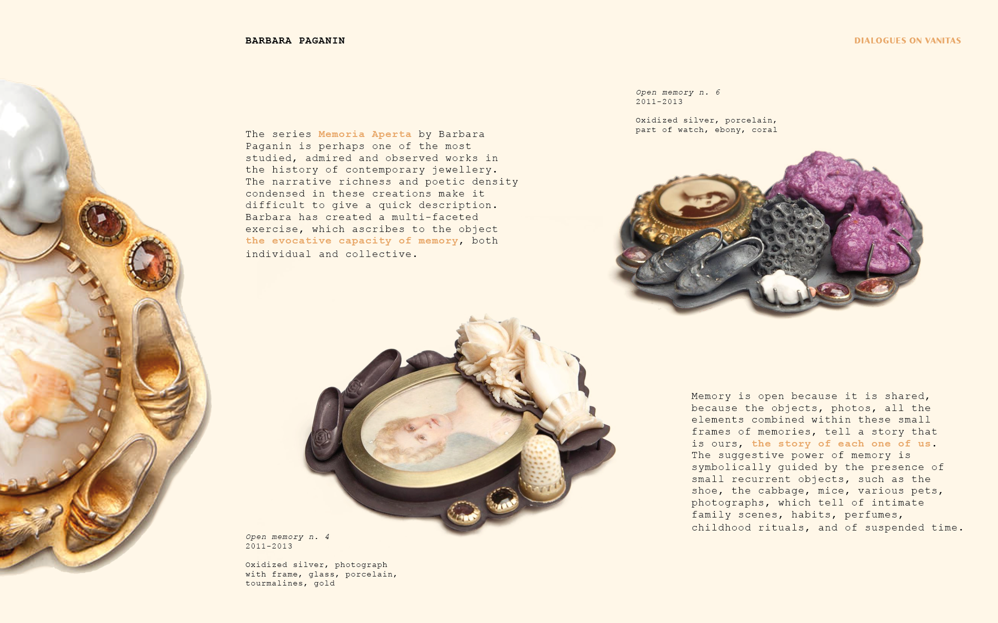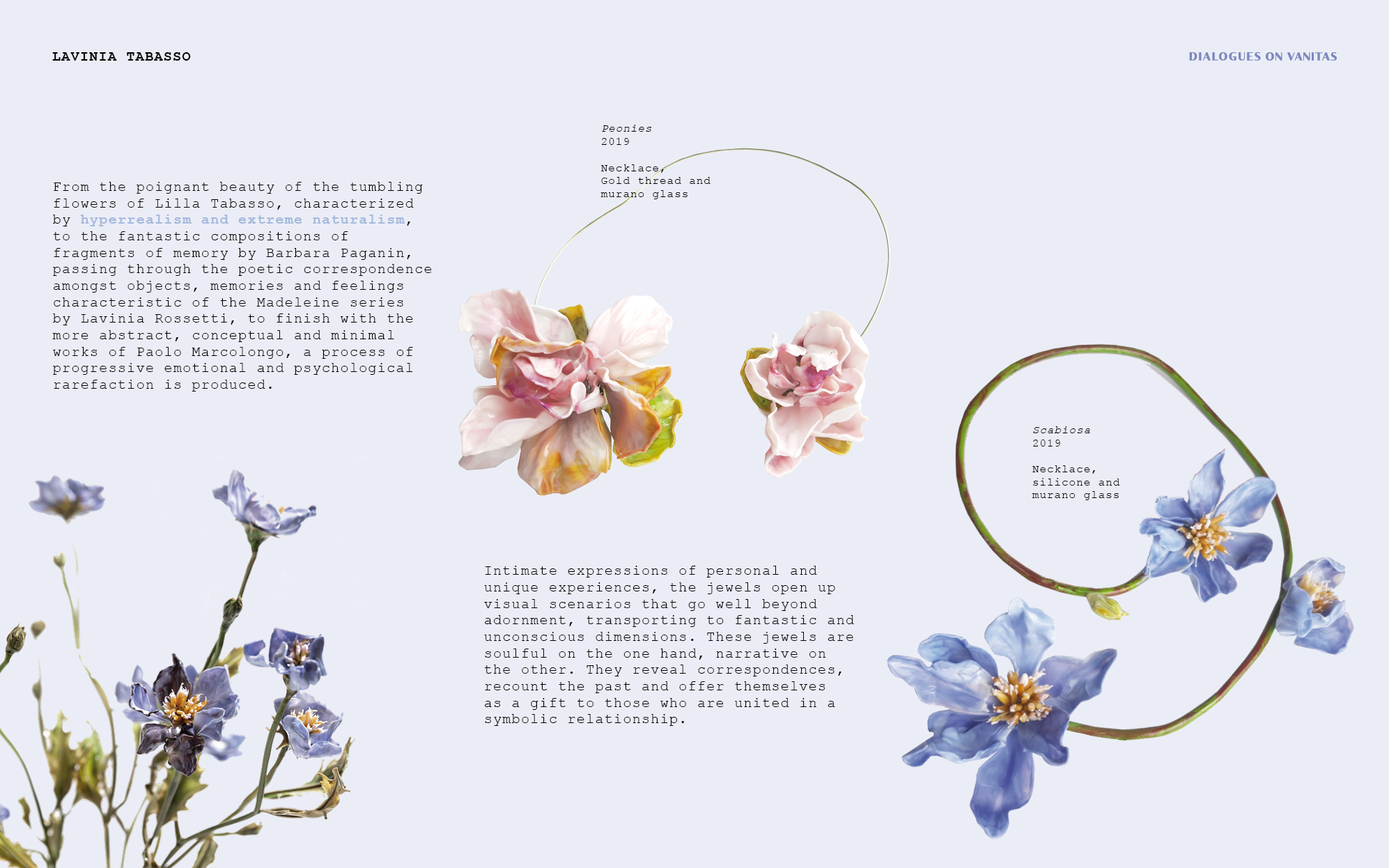 Project presentation for Dialogues on Vanitas jewelry exhibition.